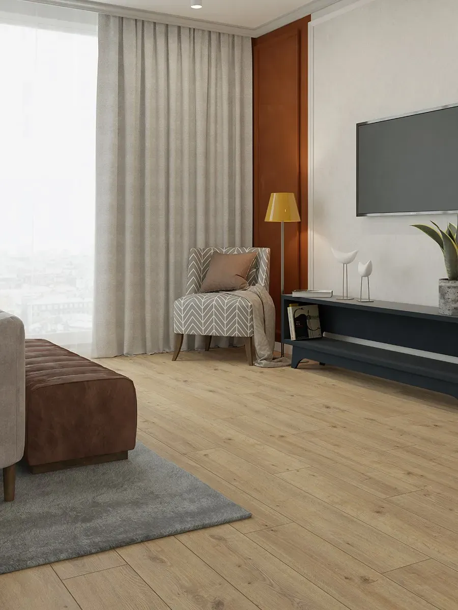 Напольное покрытие EGGER Laminat в формате широкой половицы с имитацией древесины. Ваши преимущества: 1)Надежные и долговечные благодаря износостойкой, устойчивой к выцветанию поверхности; 2)Простые в уходе и обладающие антибактериальными свойствами благодаря отталкивающей загрязнения и легко очищающейся ламинированной поверхности, препятствующей размножению бактерий; 3)Наделены антистатическими свойствами, минимизирующими проявления статического электричества 4)Универсальны в своем применении – подходят, среди прочего, для использования вместе с системой подогрева пола 5)Широкая линейка декоров и форматов, отвечающая индивидуальным пожеланиям клиентов в отношении оформления помещений 6)Экологически безопасная продукция, которая производится из древесины, поступающей только из местных лесных хозяйств, имеющих сертификат соответствия, и не содержит ПВХ. Подходят для различных способов укладки благодаря замковой системе CLIC it! (герметичное соединение деталей, с предварительным натяжением)